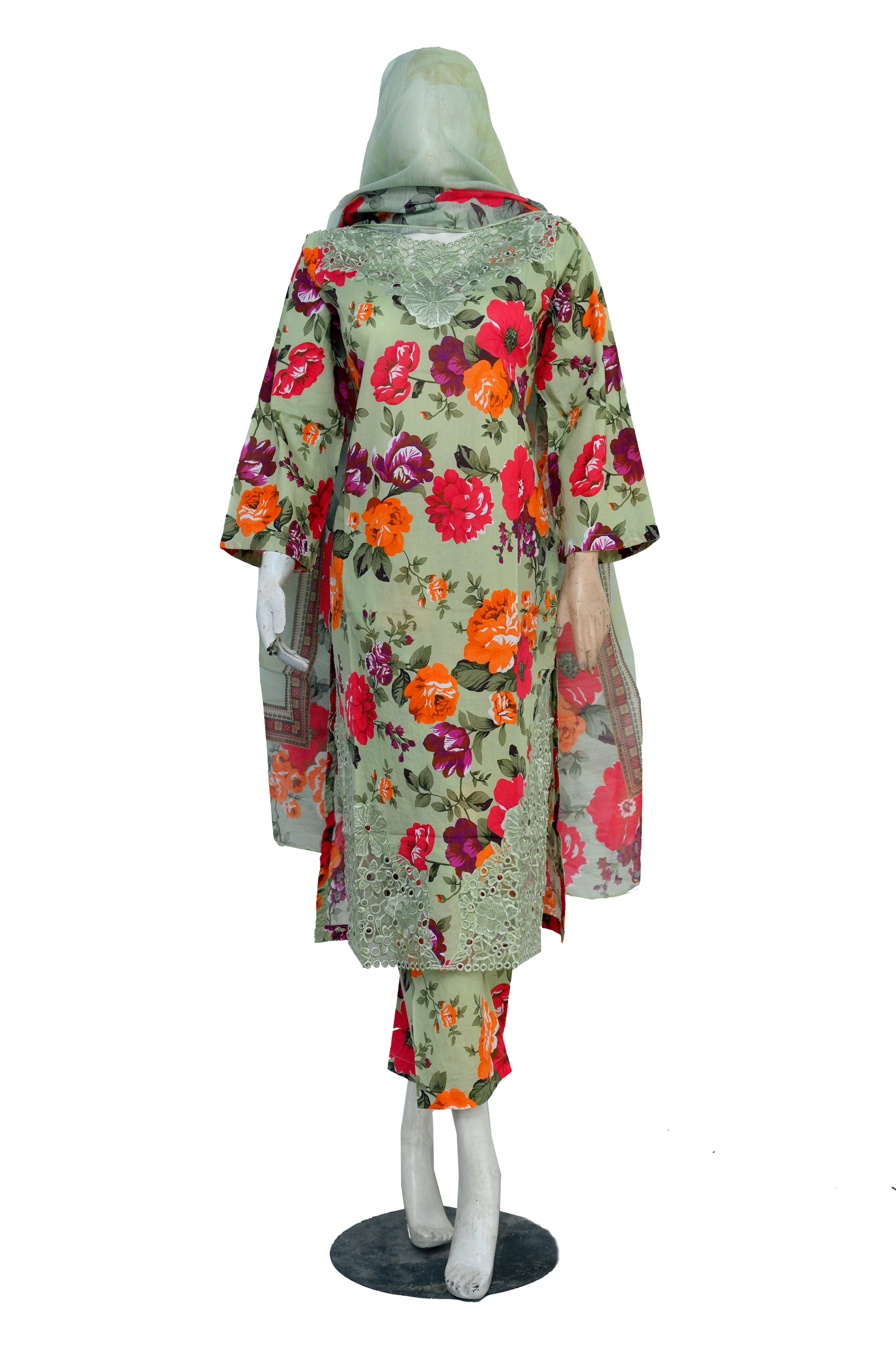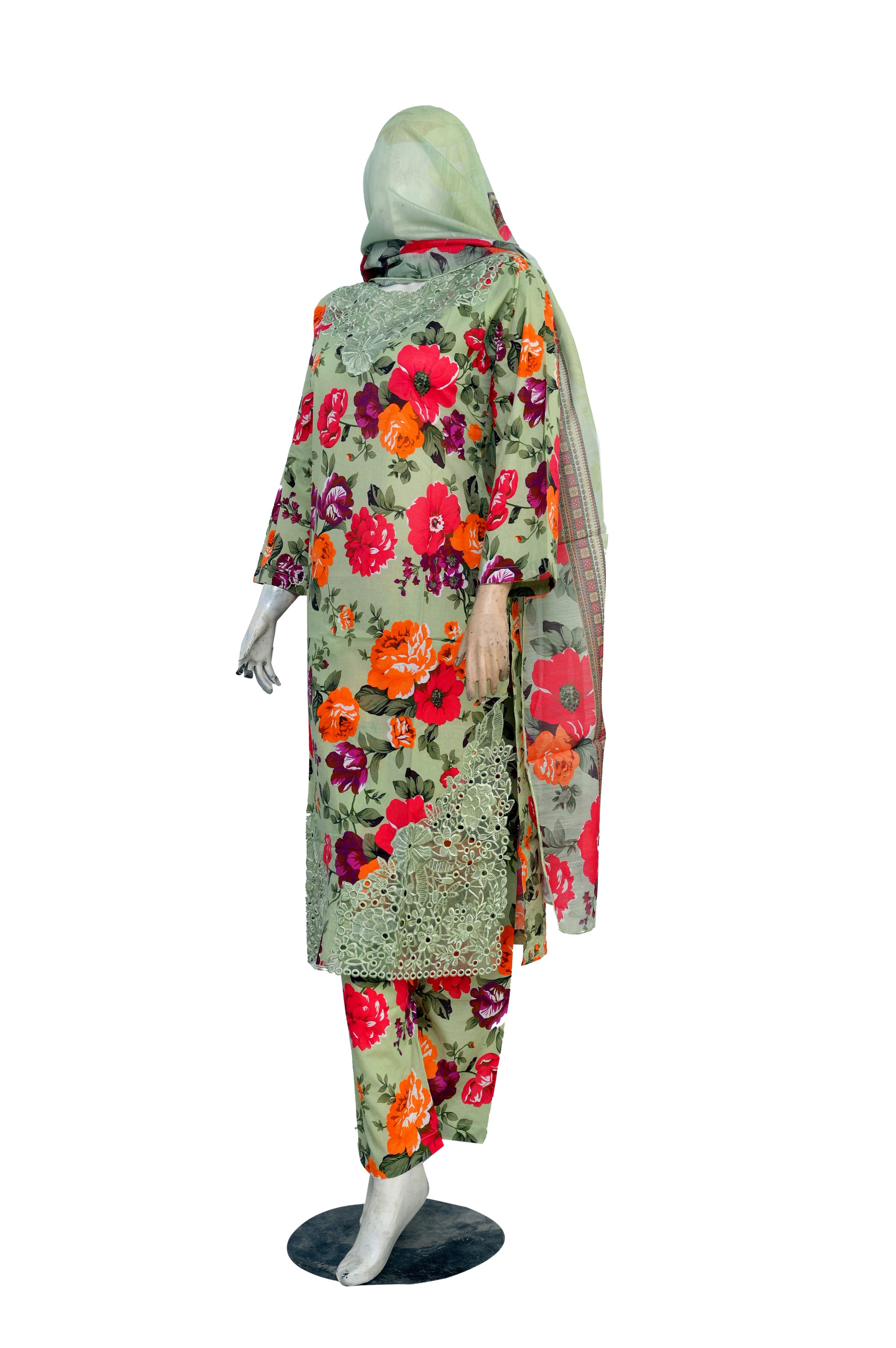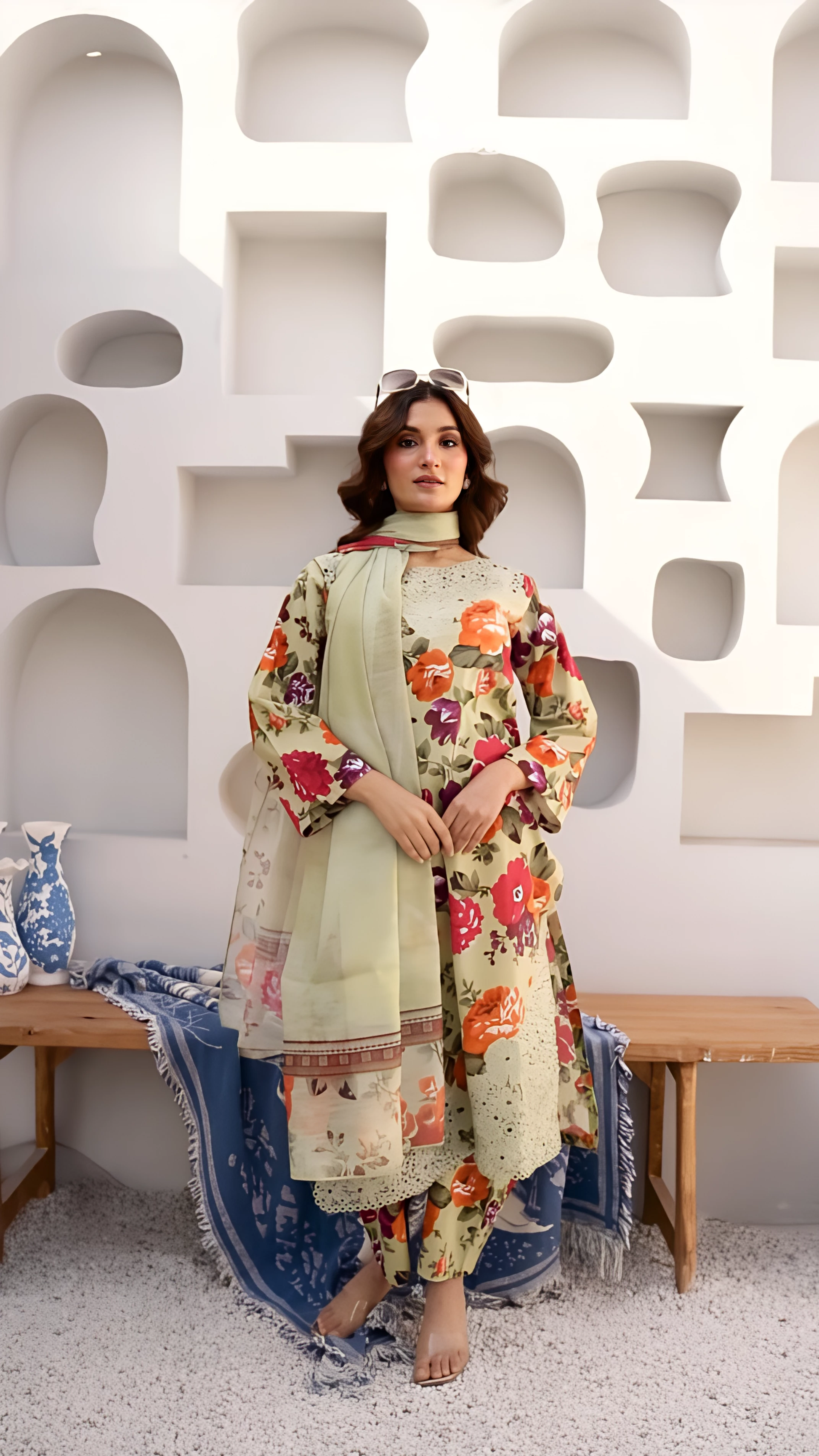 Swera B 11 è il tuo perfetto abito pronta consegna di 3 pezzi in tessuto di prato, con un bellissimo lavoro di patch ricamato sul collo e le maniche, e un delizioso dupatta diamante di seta. Stile e comodità per un look impeccabile.
