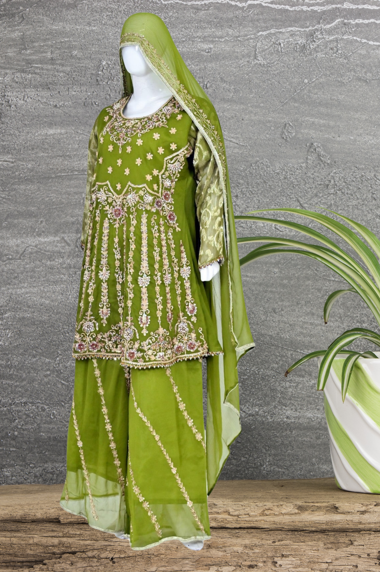 - Trouser = Inner body kattan outer body shaffun, heavy hand work and tilla embroided
