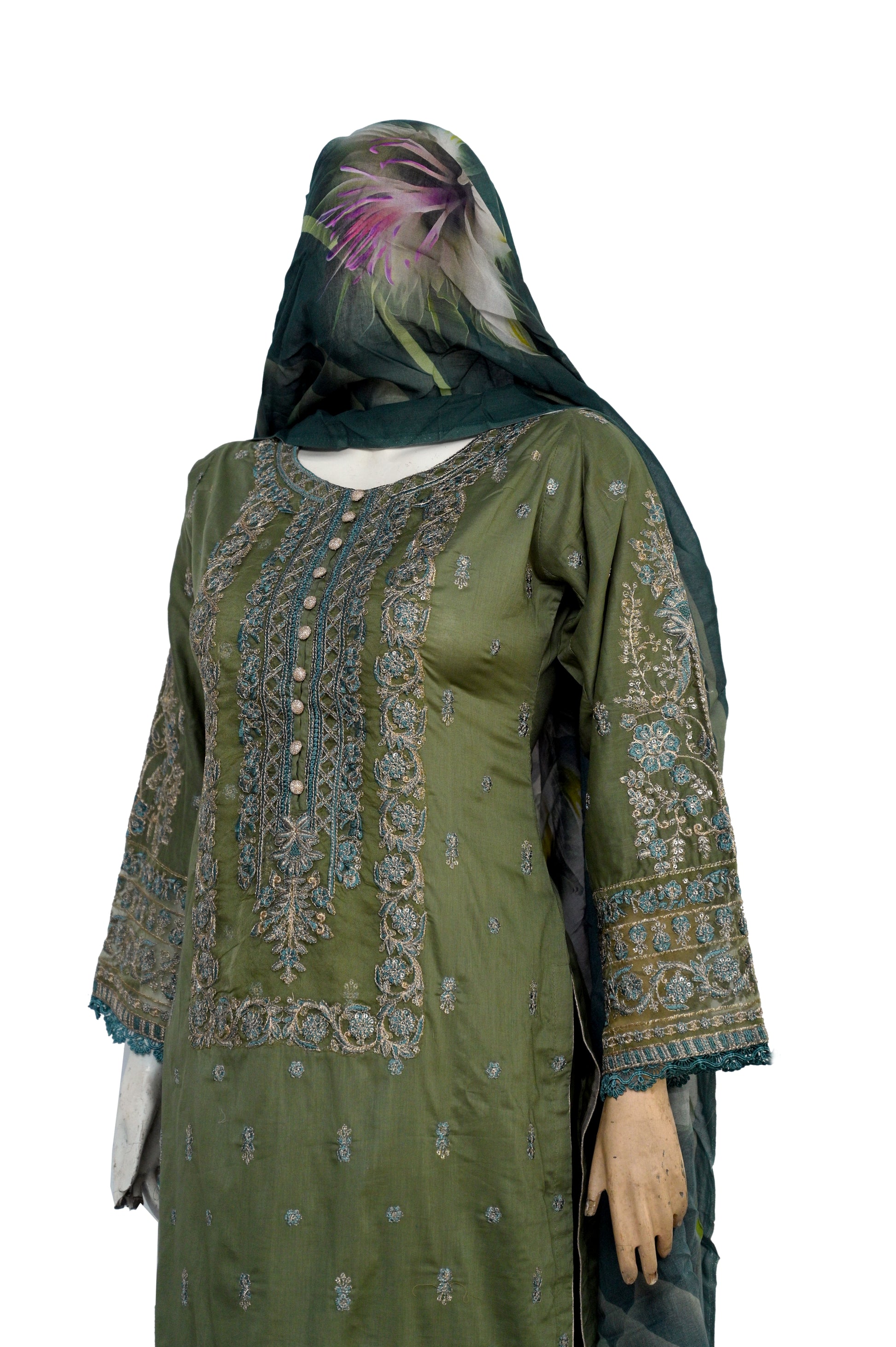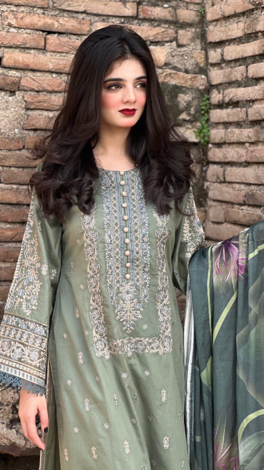Realizzato in cotone di qualità premium, il vestito Swera B 16 è pronto per essere indossato in 3 pezzi. Con elegante lavorazione Chiken Kari e dettagli pesanti ricamati sul collo, il bordo e le maniche, questo vestito offre uno stile senza pari. Il dupatta in Diamond Lawn con stampa digitale e bordi di pizzo aggiunge un tocco di classe al tuo look.