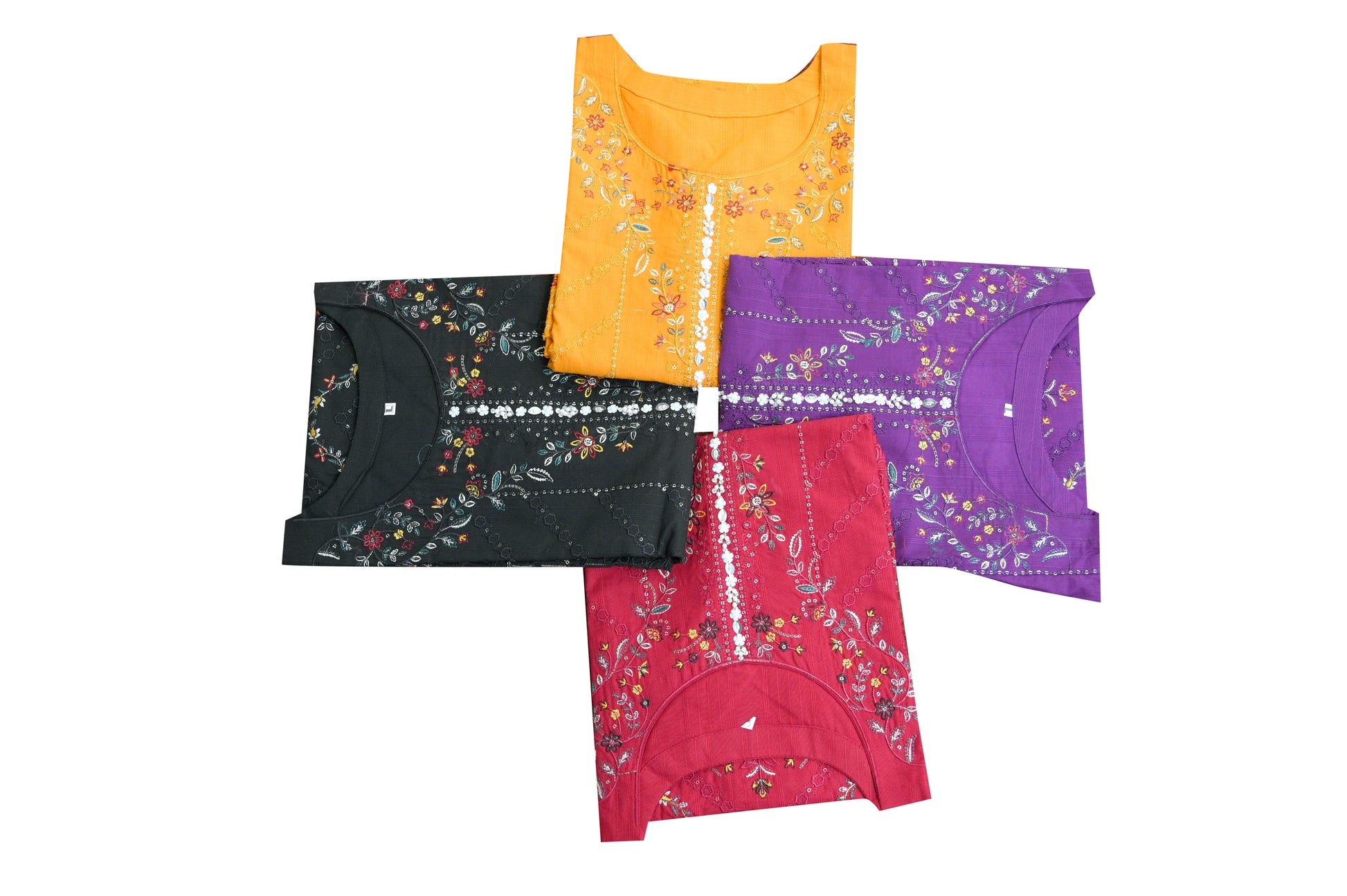 Il Swera B 27 è un elegante abito pronto per essere indossato, con un bellissimo lavoro di ricamo sul bordo e un meraviglioso lavoro realizzato a mano sul collo. Completo di un dupatta con diamanti, questo abito ti farà sentire bella e pronta per qualsiasi occasione. La qualità artigianale e i dettagli decorativi rendono questo abito un must-have per ogni donna di classe.
