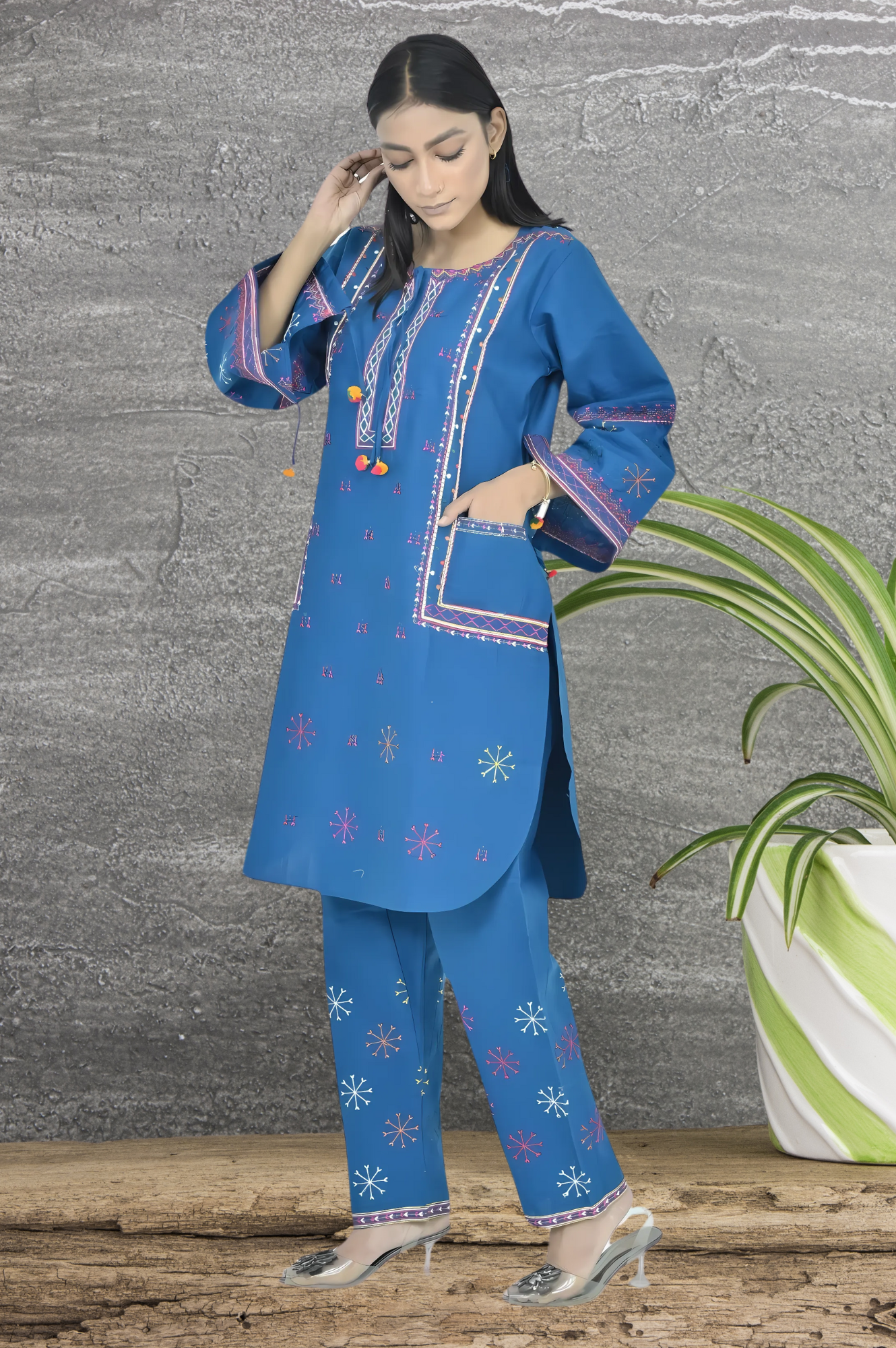 Questo elegante abito Swera B ML-1073 (B) è realizzato in morbido tessuto Khaddar e dettagliato con splendidi ricami, che lo rendono unico ed elegante. Il pantalone abbinato, anch'esso in Khaddar, è ricamato con cura per completare il look. Taglia unica, adatto a qualsiasi fisico. Approfittane subito!