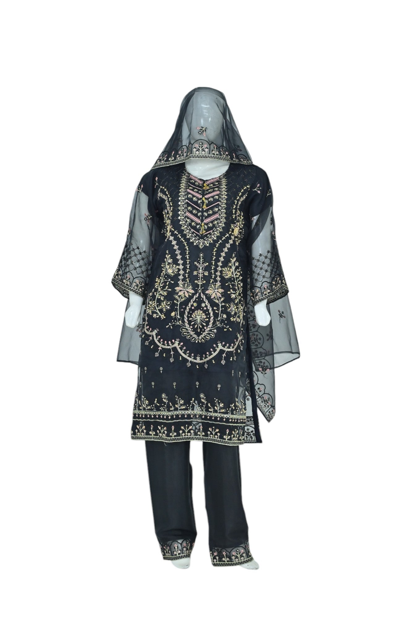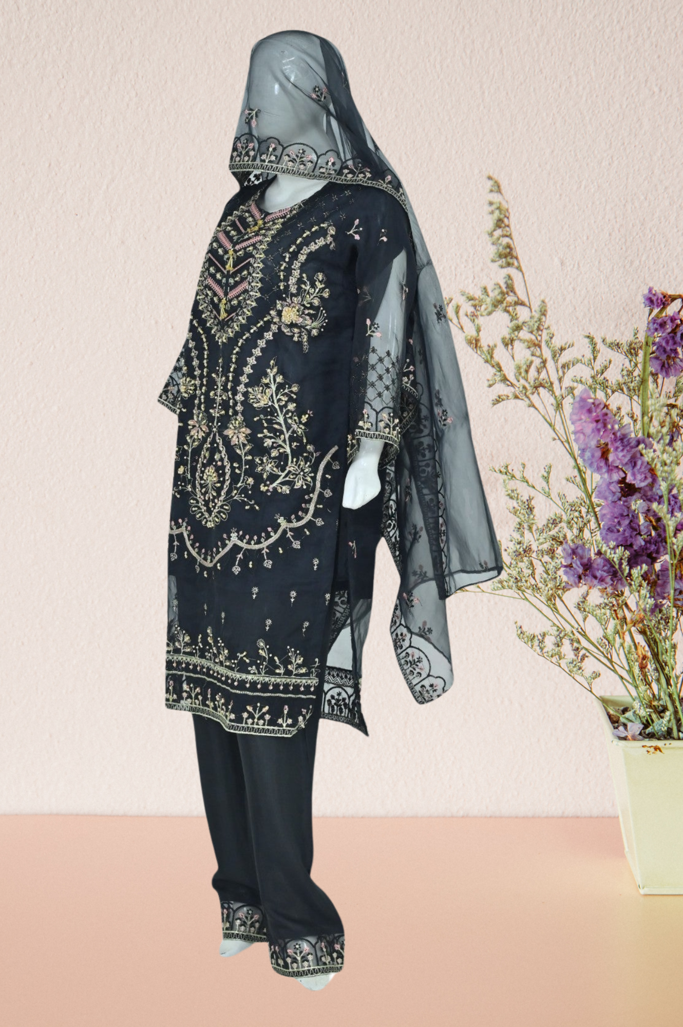 Top Swera B SF - 494 Lavorazione a mano pesante e ricami in tilla. Dupatta in organza e ricamata. Pantaloni in seta cinese. La perfetta combinazione di tessuti di alta qualità e dettagli intricati per aggiungere una nota di eleganza alla tua collezione.